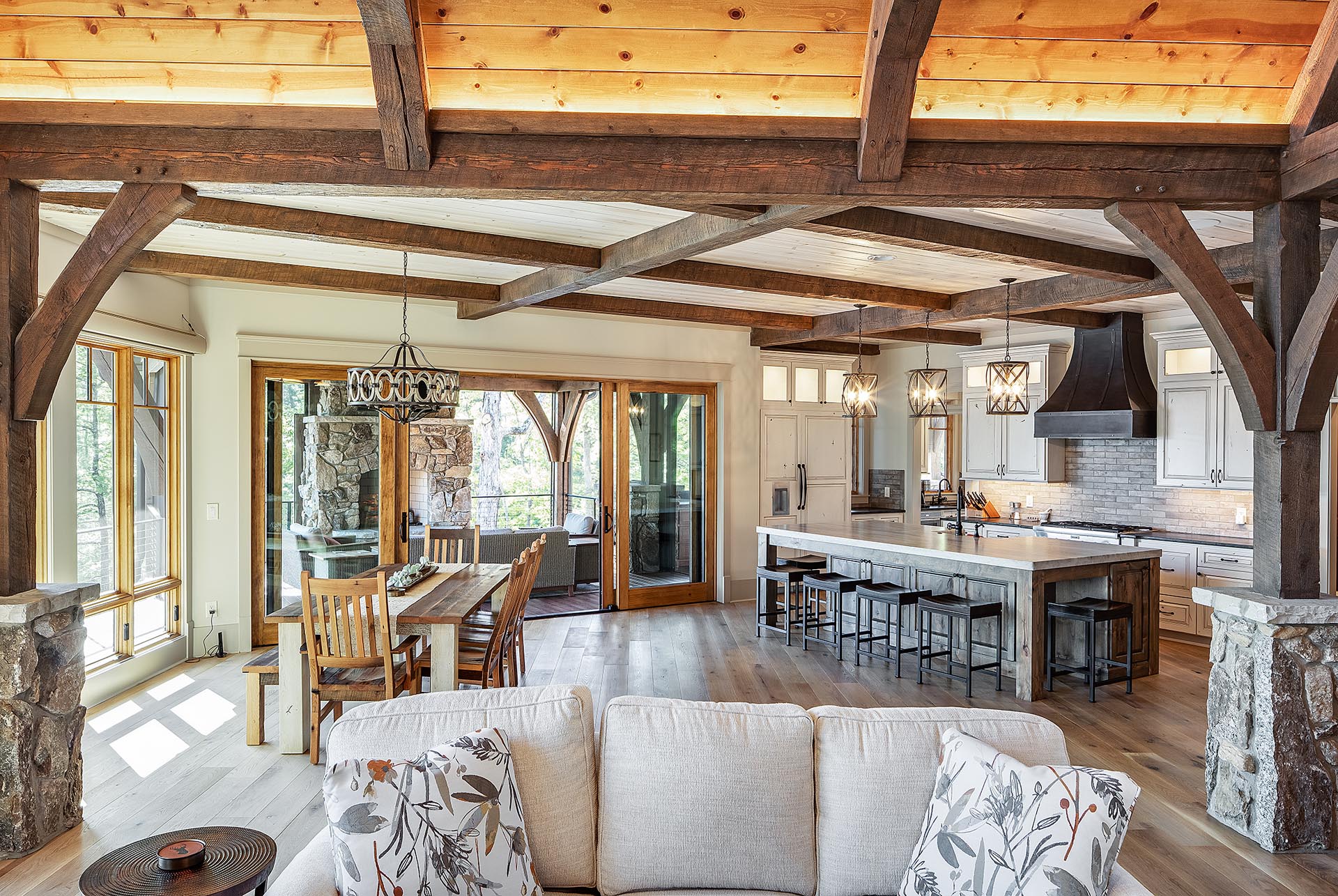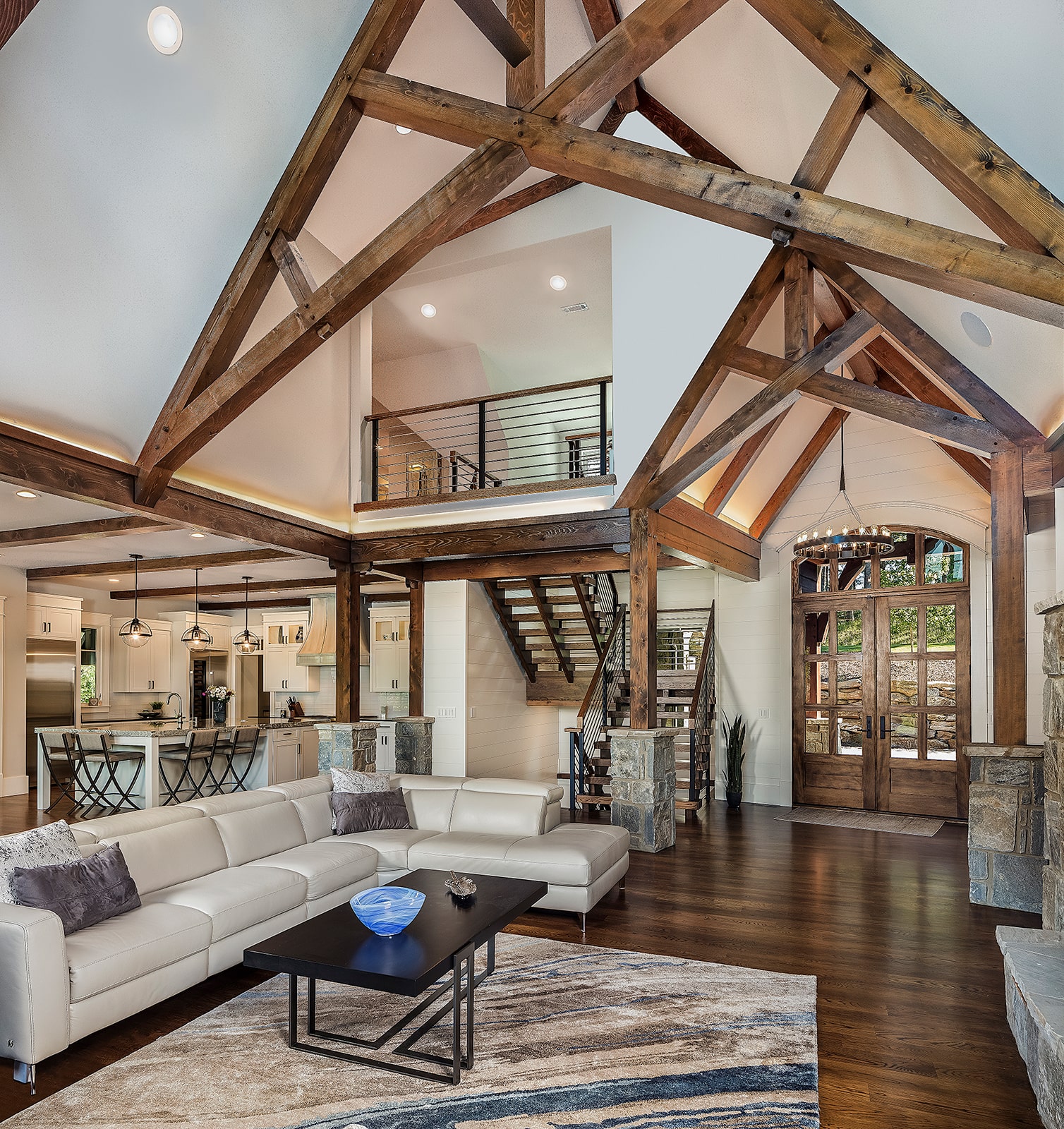 Incorporating heavy timber can add an element of nature, strength, and timelessness into most any design style – from modern to traditional, contemporary to classic. Anything from a fully timber-framed structure, to decorative trusses in a great room – whatever post and beam components you incorporate will add distinction to the space. Our design team has the creativity and flexibility to help you achieve the unique aesthetic you desire, and our craftsmen have the expertise to bring it all to life… king post, queen post, scissor-style, hammer beam, or curved bottom chord trusses – even trusses with visible steel elements blended into the design can be created – the sky is the limit!