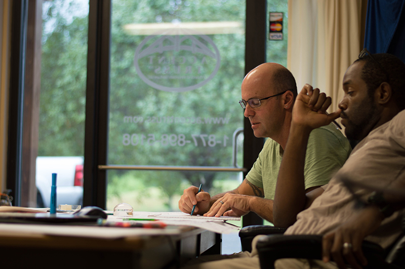 No matter the size of a project, it all starts here. Crafting the work begins with precise planning. Careful calculations are done to ensure only the best is delivered to our clients in the end. Jim and Juston are experts at this!