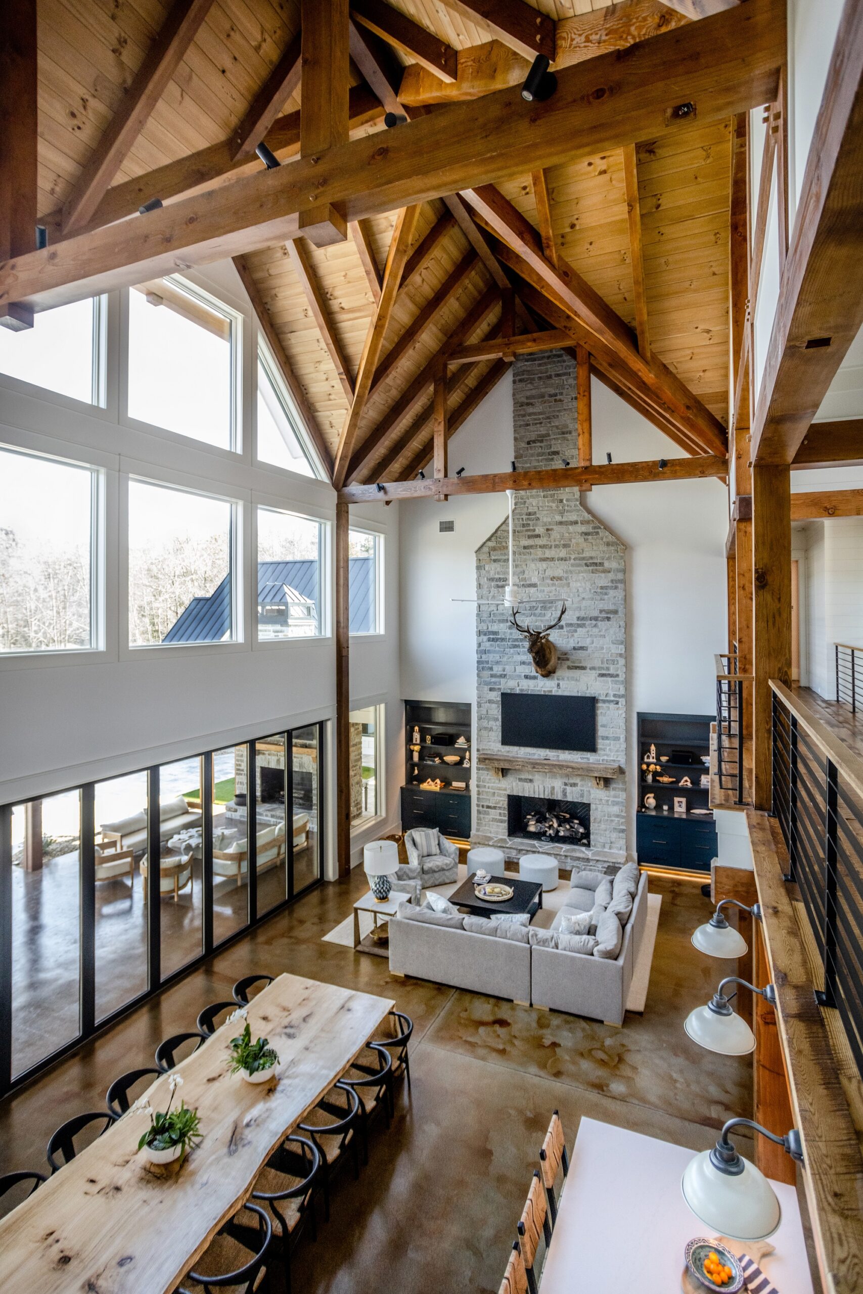 Our team had the privilege of creating these stunning rough-sawn trusses and timber frames for this luxury, custom built home on Lake Kewoee. Builder: ARCON Architects & Builders, LLC