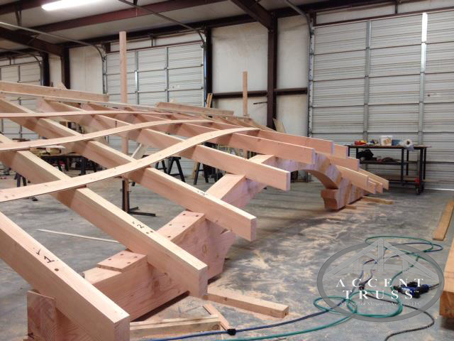 The Accent Truss team is in progress of fabricating the timber frame for a large lake house. Design is by Wright Design. The following pictures are the first of four loads going out to the site. Keep an eye out for future newsletters as we continue to show the progress...