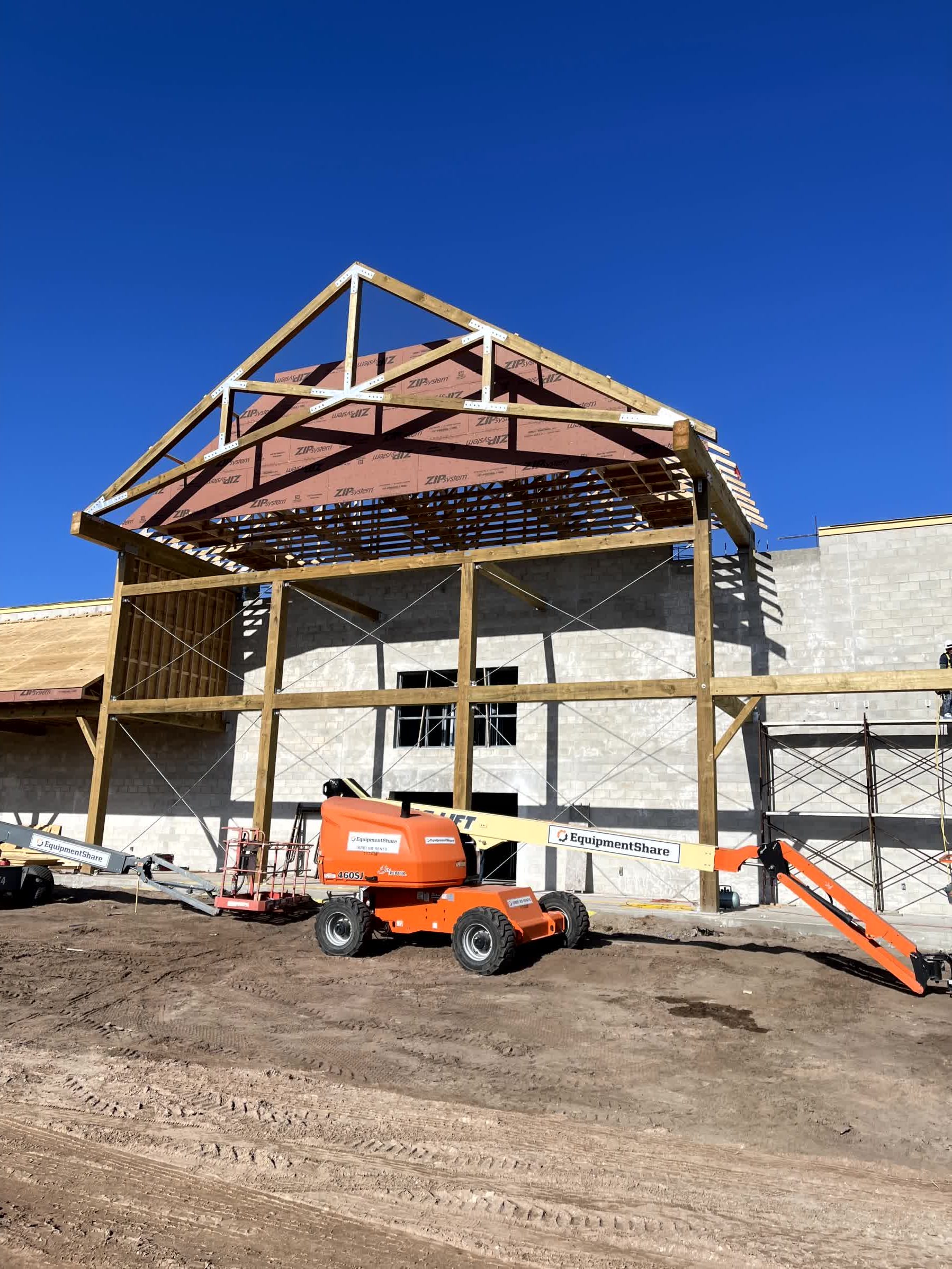 From small gable trusses to large commercial store fronts, our team has you covered! Front wall and entry of Ace Hardware in Jacksonville, Florida. Covered entry for a porch on Lake Keowee, South Carolina. Covered rear porch truss on Lake Keowee, South Carolina. Eyebrow entry for...