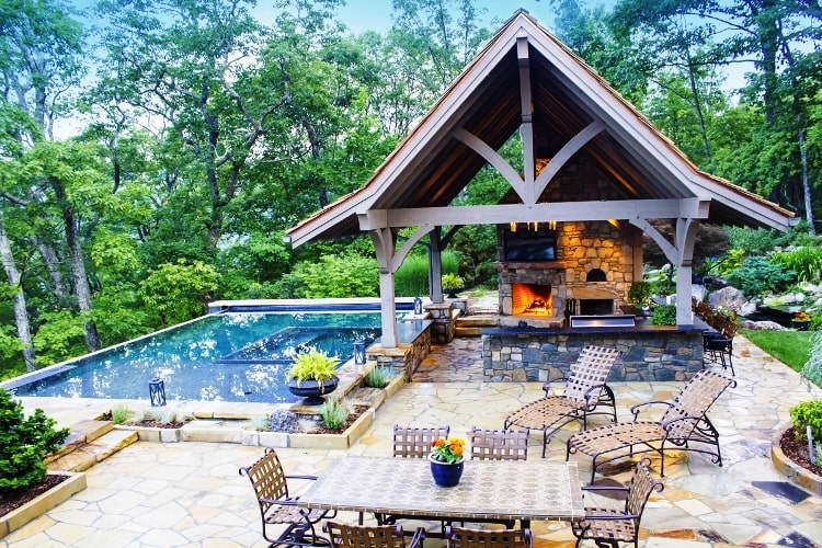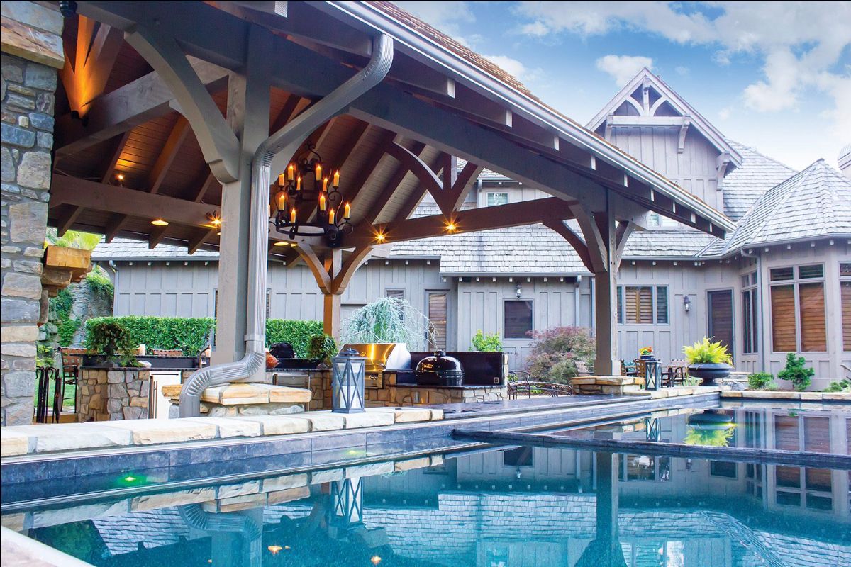 As you’re thinking and planning you or your clients outdoor spaces here’s some visual inspiration for you on how to incorporate heavy timber trusses and components poolside, in the garden and/or with an outdoor kitchen. The sky’s the limit and the ceiling so to speak. And don’t forget those exterior details that add that extra something special to to the exterior of any building or home; they’re also a great way to enhance those outdoor visuals.